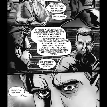 Check out the sample pages, and buy your own copy of Fatal-Ray now! Welcome to a violent indie crime noir comic made with love.